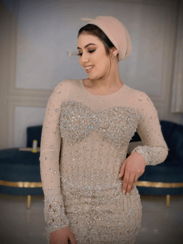 اختاري الأنوثة والرقي بفستان خطوبة مزين بورود ثلاثية الأبعاد، مع تنورة واسعة تضفي لمسة من السحر على إطلالتكِ.