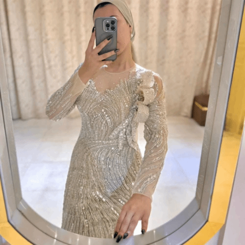 احتفلي بليلة الخطوبة بإطلالة تتجاوز الأحلام. هذا الفستان الأنيق بتفاصيله الساحرة ولونه البديع،