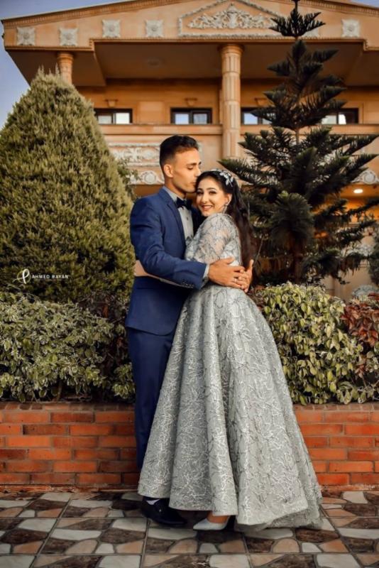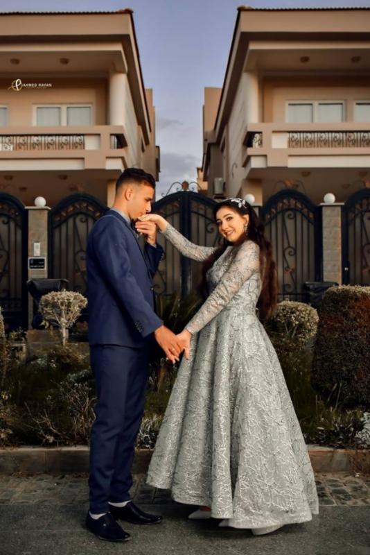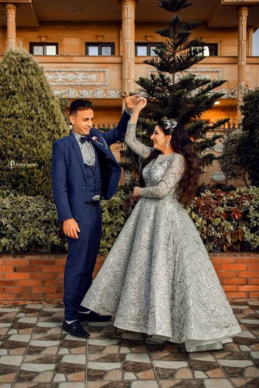 فستان خطوبة مميز باللون الفضي لإطلالة متألقه